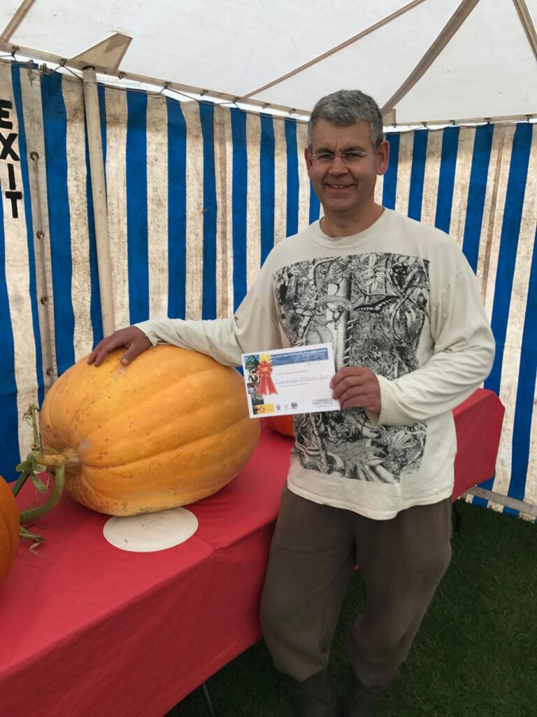 Dave used many ways to promote the value of allotment life, notably a Sunday farmers’ market stall that he helped to run for four years at Cambridge market. This was a perfect way to meet people, to show the benefits of organic growing and to advertise the allotment sites. He also ran grow-your-own sessions on his plots and, with Susanna, hosted children from the Fawcett Schools. Whenever we had an open day or Fawcett had a summer fete, Dave would be there with a stall showing all the produce you could grow. He loved finding different ways to encourage growing – bean tickets at the seed swap, seed bombs at any event, and the Human Fruit Machine, a fun way to advertise fruit and veg loved by kids (and adults!). Cambridge 105 Radio invited him to contribute to their weekly Flavour programme. Alan would interview Dave on his plot giving seasonal advice but also showcasing his competitiveness in growing long parsnips and large pumpkins. When Dave took his produce to the annual food show on Parker’s Piece, and if he didn’t win at least ten medals he was disappointed!