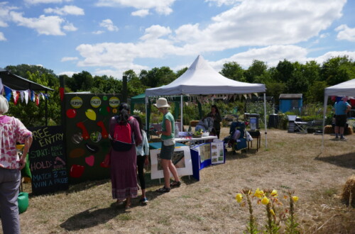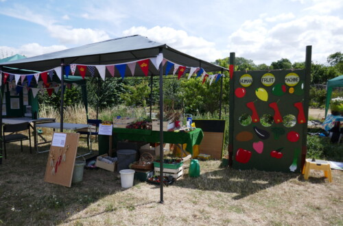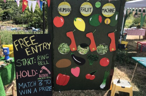 Dave used many ways to promote the value of allotment life, notably a Sunday farmers’ market stall that he helped to run for four years at Cambridge market. This was a perfect way to meet people, to show the benefits of organic growing and to advertise the allotment sites. He also ran grow-your-own sessions on his plots and, with Susanna, hosted children from the Fawcett Schools. Whenever we had an open day or Fawcett had a summer fete, Dave would be there with a stall showing all the produce you could grow. He loved finding different ways to encourage growing – bean tickets at the seed swap, seed bombs at any event, and the Human Fruit Machine, a fun way to advertise fruit and veg loved by kids (and adults!). Cambridge 105 Radio invited him to contribute to their weekly Flavour programme. Alan would interview Dave on his plot giving seasonal advice but also showcasing his competitiveness in growing long parsnips and large pumpkins. When Dave took his produce to the annual food show on Parker’s Piece, and if he didn’t win at least ten medals he was disappointed!